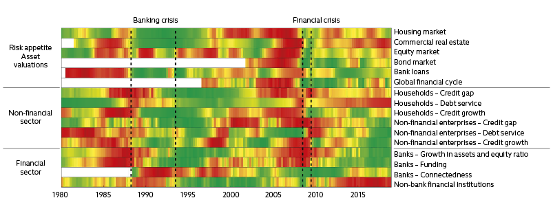 Composite indicators in the heatmap. 1980 Q1 – 2019 Q2