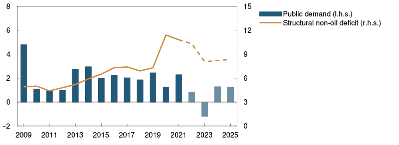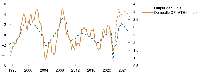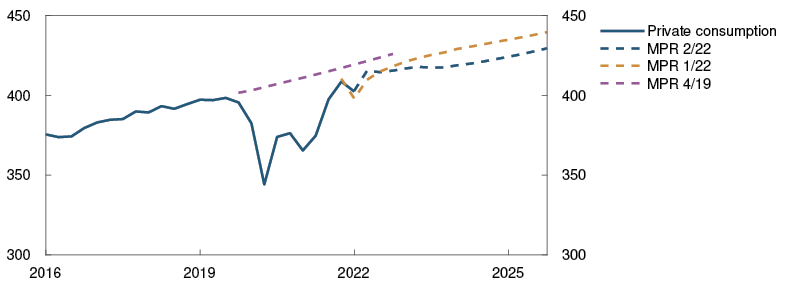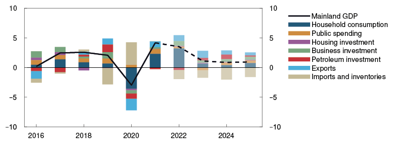 After a period of a rapid post-pandemic recovery, activity in the Norwegian economy has risen to a high level. There are prospects of somewhat slower growth ahead. Higher inflation and rising interest rates will likely curb growth in household consumption in the coming years. At the same time, solid growth in petroleum investment and business investment is expected to help lift activity.