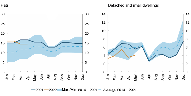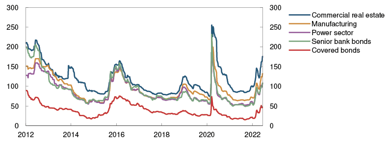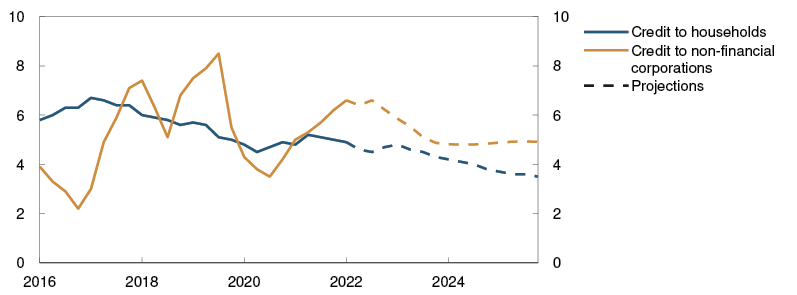 Credit growth and property price inflation slowed in the course of 2021 after having been high during the pandemic. In 2022, house price inflation has moved up again but is expected to moderate ahead. Commercial property price inflation has also moved up recently, but commercial property prices are expected to edge down ahead on the back of gradually rising yields. However, yields are low, and an abrupt rise can lead to a more pronounced fall in prices. On the whole, the assessment of cyclical vulnerabilities is approximately the same as before the pandemic.