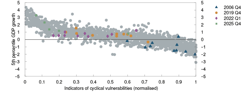 Uncertainty about the outlook for global growth and inflation has recently resulted in considerable financial market volatility. An abrupt rise in foreign risk premiums and a sharp fall in asset prices may affect the Norwegian financial system. Owing to vulnerabilities in the financial system, such shocks may have a more pronounced impact on the Norwegian economy.