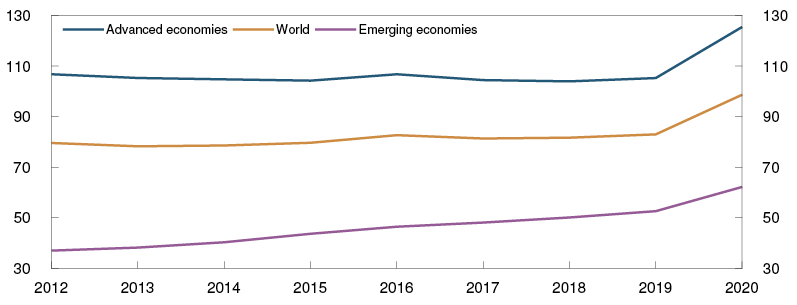 In several countries, the corporate sector was already highly indebted prior to the Covid-19 pandemic. New borrowing to address liquidity challenges have amplified these vulnerabilities. This debt will be more vulnerable if lower growth prospects weaken or government support measures are scaled back prematurely. Uncertainty regarding the pandemic ahead amplifies the global uncertainty concerning economic developments and financial conditions, and policy rates may remain low ahead. Low interest rates make it easier to service debt in difficult periods but may fuel debt growth and increase private sector vulnerabilities further out.