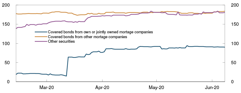 - Temporary changes to the guidelines for collateral for loans from Norges Bank were announced on 18 March. The purpose is to increase the potential use of the Bank’s extraordinary lending facility (F-loans). Norges Bank has announced that the easing of collateral requirements will be reversed in part from 2021.