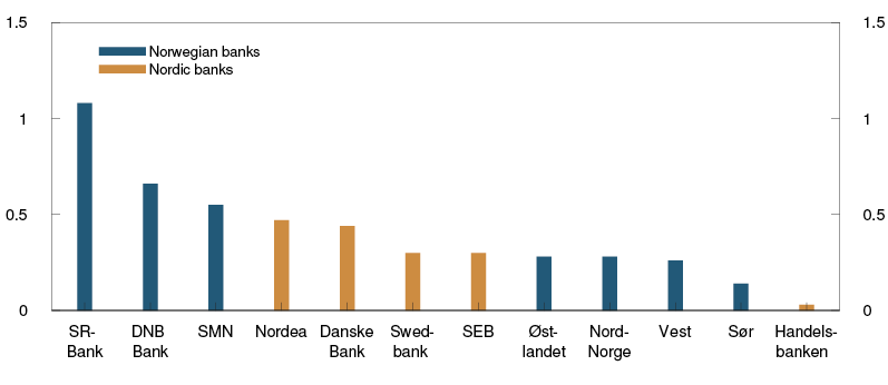 Sources: Banks’ quarterly reports, Finanstilsynet (Financial Supervisory Authority of Norway), SNL / S&P MI and Norges Bank