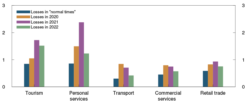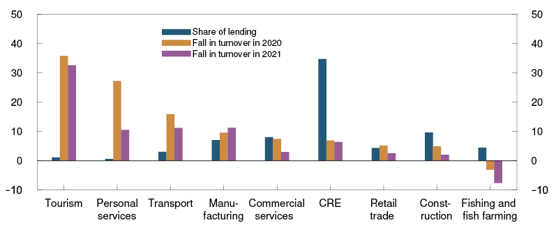The Covid-19 pandemic and measures to contain it are weakening earnings for a number of Norwegian firms. The fall in oil prices led banks to recognise substantial impairment losses on oil-related exposures during the first half of 2020. Looking ahead, loss provisions may also increase in other industries. Analyses of Norwegian firms show that the industries hardest hit so far by the Covid-19 pandemic are not the ones with the most bank loans.