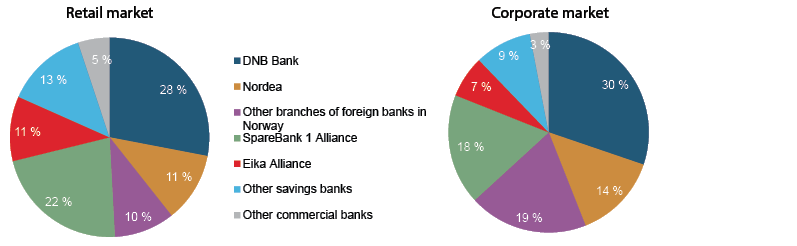 1 All banks in Norway including foreign branches. Nordea is a branch of a foreign bank from 2017. The figures include mortgage companies.