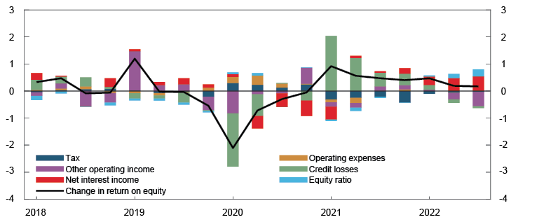 Overall, the financial system is judged to be well equipped to address the risks we are facing. Tightened capital and liquidity requirements over many years have better equipped banks in Norway and many other countries to deal with crises. Norwegian banks’ solid earnings are the first line of defence for absorbing losses and give banks the flexibility to lend to creditworthy firms and households. Banks’ profitability is expected to remain solid, but the risk of losses has risen.