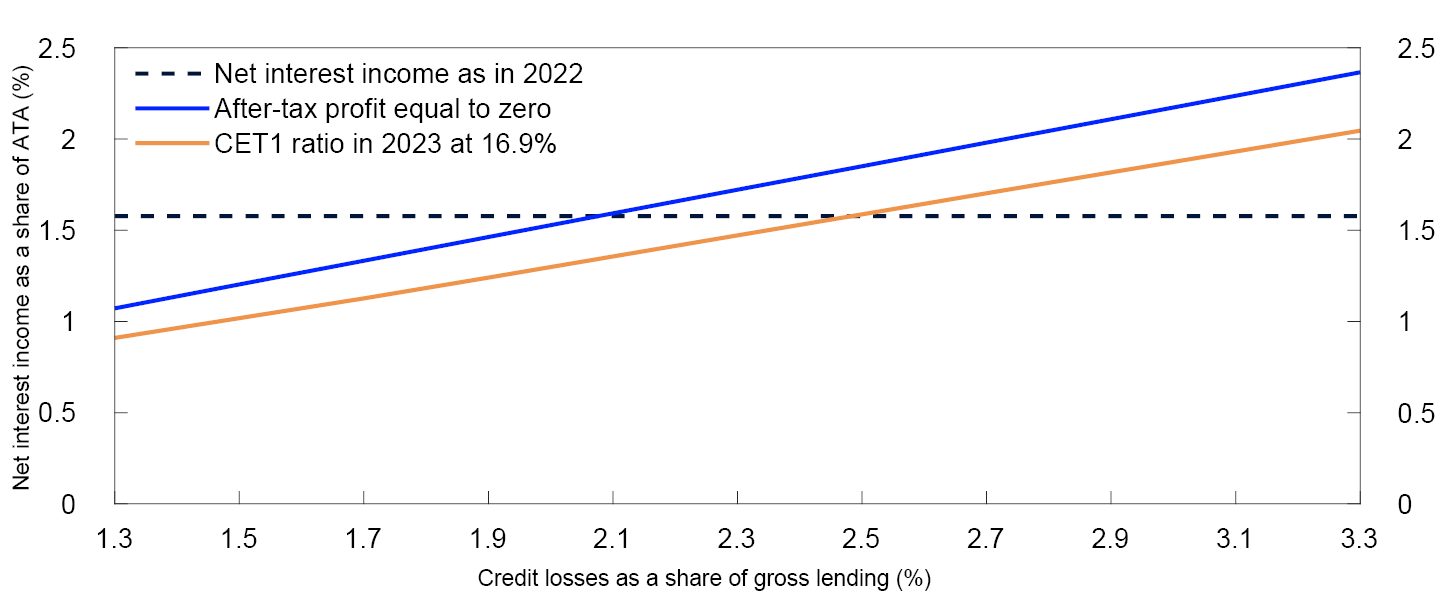 Norwegian banks are solid, liquid and highly profitable. Problems at some banks abroad have led to substantial movements in financial markets. If the uncertainty in the financial sector grows and spreads, Norwegian banks’ wholesale funding may become more costly. It is uncertain how households and firms will adjust to higher interest rates and higher costs. In the event of a severe economic downturn, bank losses may be substantial, but banks are able to absorb considerable losses.