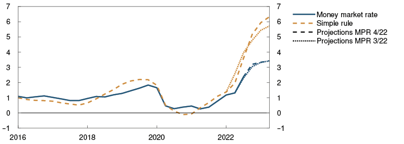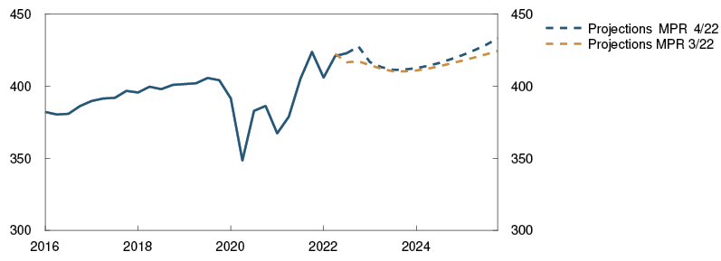 Activity in the Norwegian economy has been higher through 2022 than previously assumed, and mainland GDP has increased faster in recent months than expected. High inflation and higher interest rates have reduced household purchasing power, but consumption has so far remained higher than projected in the September Report.