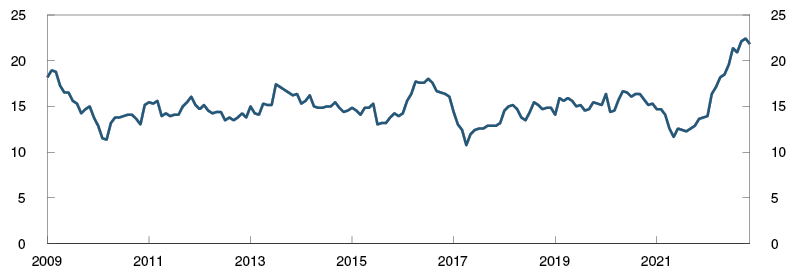 According to Norges Bank’s Expectations Survey, inflation expectations for the coming years have increased recently. Long-term inflation expectations increased further in 2022 Q4 and are above the 2% target.