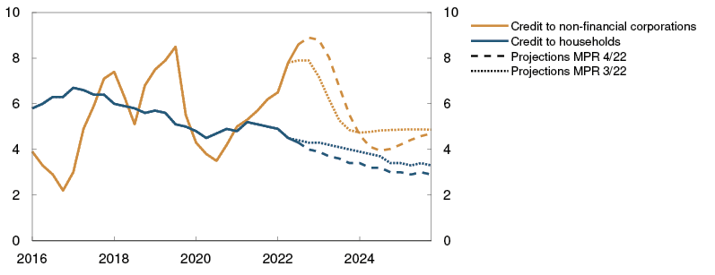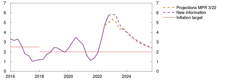 Since the September Report, inflation has been higher than projected and is expected to remain high for longer than previously projected. At the same time, the labour market appears to be a little tighter than anticipated. On the other hand, the policy rate has been raised considerably over a short period of time, and monetary policy has started to have a tightening effect on the economy. There are signs that the slowdown may prove somewhat more pronounced than envisaged in September.
