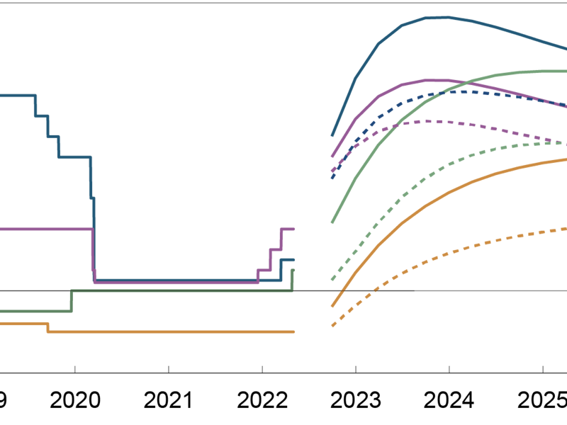 Overall economic activity among trading partners appears to have risen slightly less than projected. Looking ahead, higher inflation and prospects for a faster rise in policy rates may lead to lower growth than assumed in the March Report. Lockdowns in China pull in the same direction.