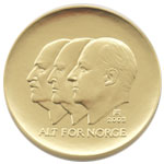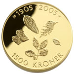 To commemorate the 100-year anniversary of the dissolution of the union between Norway and Sweden in 2005, a 1500-krone gold commemorative coin has been struck. The coin, which is proof quality and legal tender, will be put into circulation on 27 November 2003.