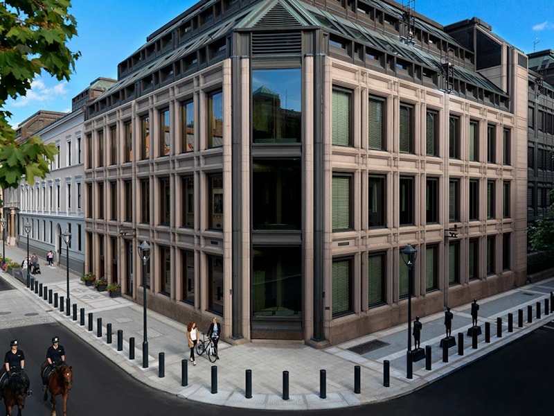 Norges Bank sett fra hjørnet Kirkegata/Revierstredet. (Foto: Esten Borgos)
