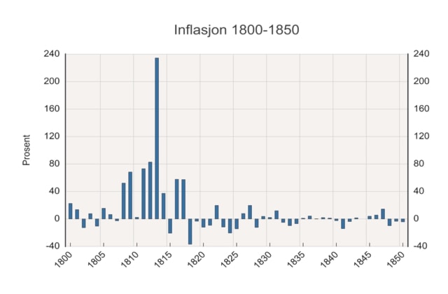 Under Napoelonskrigen og den første tiden etter 1814 var det kaotiske forhold i pengevesenet. Det var hyperinflasjon (bildet). Målestokken for betalingsmidlene forsvant! Det skulle ta lang tid før Norges Banks sedler fikk sin lovede verdi mot sølv. De første årene falt seddelverdien og nådde sitt bunnpunkt i 1822. Utviklingen snudde etter at Stortinget vedtok at sølvinnveksling skulle starte fra 1. januar 1823, men til betydelig svakere kurs enn pålydende. Fallet stanset da opp, og sedlene økte deretter gradvis sin verdi i forhold til sølv. Sedlene nådde sin pari sølvverdi i 1842. Dermed ble løftet som var gitt 26 år tidligere, innfridd. Året 1842 innledet en periode på over 70 år med stabilitet.