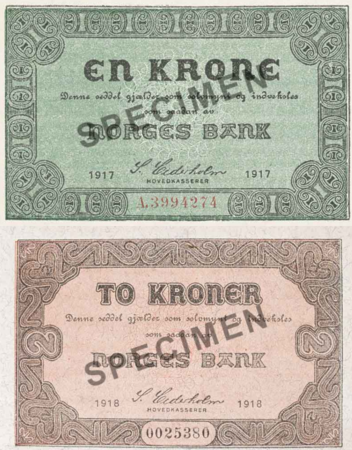 Etter utbruddet av første verdenskrig 28. juli 1914 stilte folk seg i kø utenfor Norges Banks lokaler for å få sedler innløst i gull. Fra og med 5. august ble plikten til gullinnløsning opphevet inntil videre.