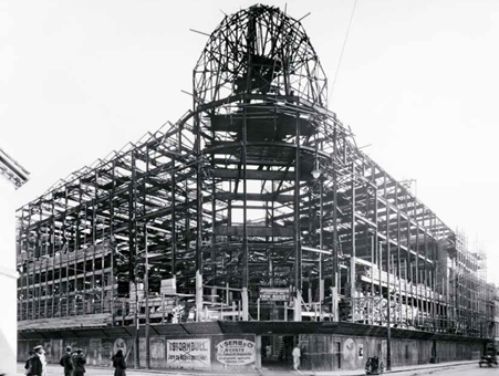 Centralbanken for Noreg var sein med å ta realitetane innover seg. Dei tok til å byggje eit nytt, flott hovudkontor i 1921. To år seinare blei banken sett under administrasjon. Foto: Anders Beer Wilse / Oslo museum