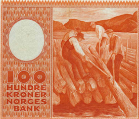 Ny 100-kroneseddel ble utgitt 1949. Motivet var basert på Erik Werenskiolds maleri «Lensekara». Alle sedlene i den utgaven hyller arbeid.