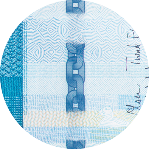 Til høyre på seddelen kan du se en ankerkjetting som er integrert i papiret. Når du vipper på seddelen, ser det ut som kjettingen beveger seg. Se video